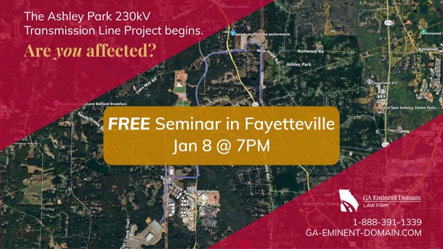 To our knowledge, we are some of the few eminent domain lawyers hosting an information session to educate property owners about the impacts of the Ashley Park 230kV Transmission Line Project.